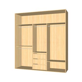 Gavetas interiores, exteriores, gavetões, gavetas com frente em vidro, sapateiras, entre outras.