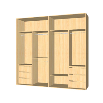 Fornecemos todas a ferragens necessárias para os roupeiros, disponibilizando uma vasta gama de puxadores, corrediças, calhas ou acessórios de interior.