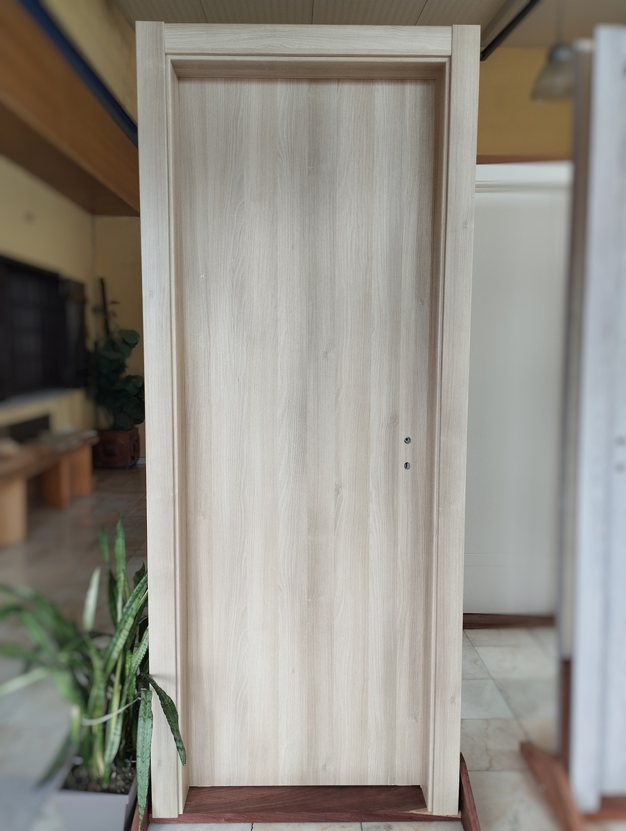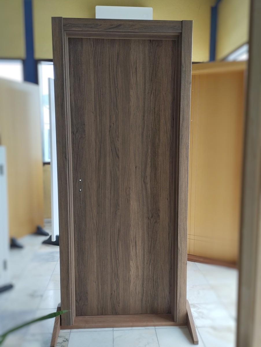 O folheado de madeira envernizada oferece um toque clássico e sofisticado às portas. Este acabamento realça a beleza natural da madeira, proporcionando um visual quente e acolhedor. A camada de verniz protege a superfície contra danos e desgaste, garantindo durabilidade. É uma excelente escolha para ambientes que valorizam a elegância e a tradição.