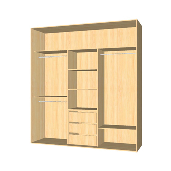 Gavetas interiores, exteriores, gavetões, gavetas com frente em vidro, sapateiras, entre outras.