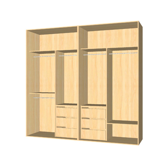 Fornecemos todas a ferragens necessárias para os roupeiros, disponibilizando uma vasta gama de puxadores, corrediças, calhas ou acessórios de interior.